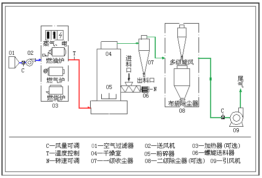 該系列設備是總結了流化床、熱破碎、旋流和分級技術的基礎上,開發、設計的一種熱效率高、適用范圍廣的新型干燥設備。